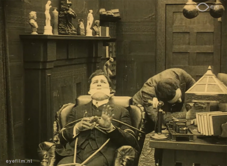 Burglary was one of the most popular suspense tropes in the movies during the silent era and especially in the years leading up to the First World War when short and feature-length dramas existed side-by-side in the cinema. The punchy visual impact of a burglar terrorizing householders was an ideal way to keep audiences on the edge of their seats.