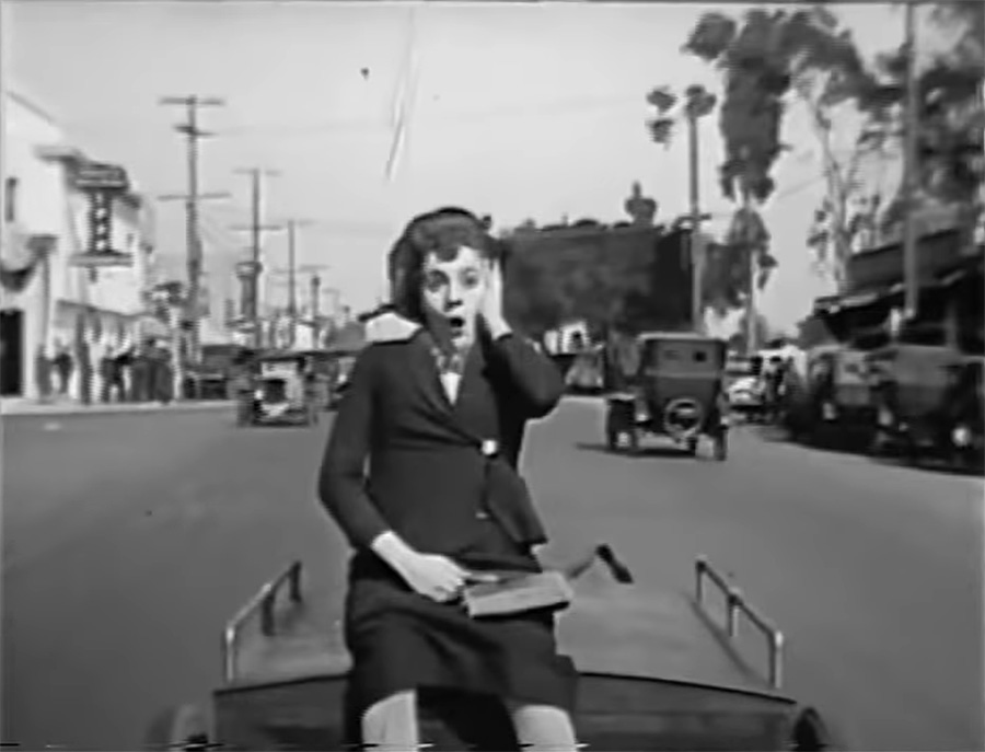 Sleeper plays Vermuda (and I love the play on trendy 1920s names), a department store clerk who is late for work by more than twenty-four hours. Officious floorwalker James Finlayson is after her hide and we first see her rollerskating hell for leather down the streets of Los Angeles in an effort to keep her job. Sleeper’s work with Charley Chase (where I primarily know her) costumed her as a standard leading lady but here, she is coded as a more eccentric character in the classic Mabel Normand or Louise Fazenda line.