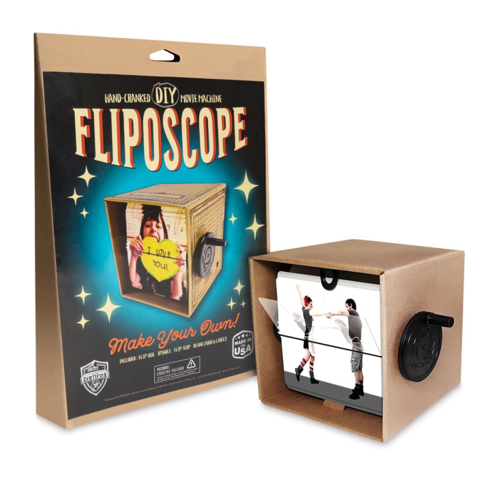 The original way to view movies was via a peepshow machine and the Mutoscope flipcard machine is still a staple of boardwalks and old-timey concessions. This is a build-your-own kit, no nitrate needed! Purchase from Blick.