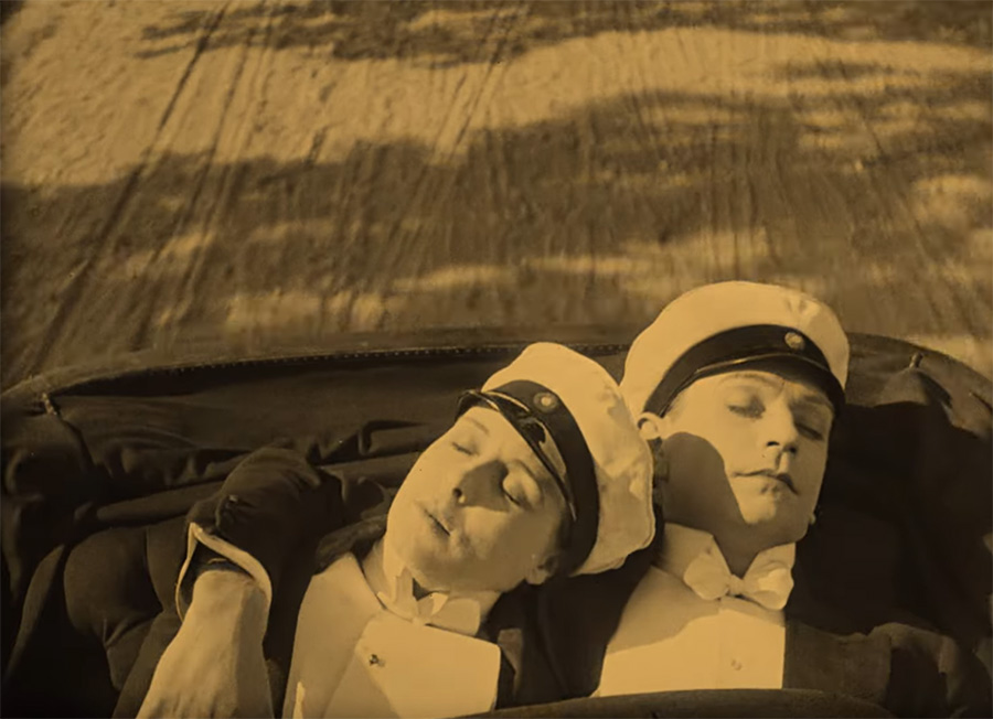 Sweden was an early and fervent stronghold of feminism and Ludwig’s nonconformist lifestyle would not be seen in cinema from many other countries. (Feminists tended to be treated as ridiculous in American films of the era.) He eagerly acknowledges that his diploma is owed to Katja’s help and is perfectly at home with her being the smart one of the couple. (This is especially interesting in light of last week’s review of The Clinging Vine, an American romantic comedy released the same year that centered on an intelligent woman propping up an incompetent man.) Even Ludwig’s response to Katja’s tails antics is to marry her and flee, not throw her over. He is childish and hurtful at times but that’s more the result of his wealth and immaturity. And, as I brought out earlier, this is a decadent satirical fantasy.