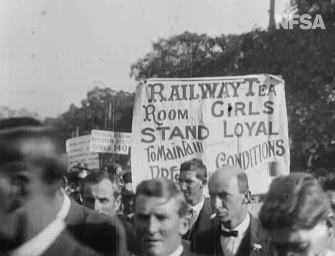 Tinsdale’s stated purpose was to capture both sides of the strike, which was nearing its end when the picture was released in October of 1917. The picture ran for about an hour and was shown on the big screen… once. It seems that October 1917 premiere was the first and last time The Great Strike was shown in its original form. Politician and scab fan Walter Wearne pushed for severe cuts to the material and The Great Strike was re-released in a pared-down form as Recent Industrial Happenings in NSW.