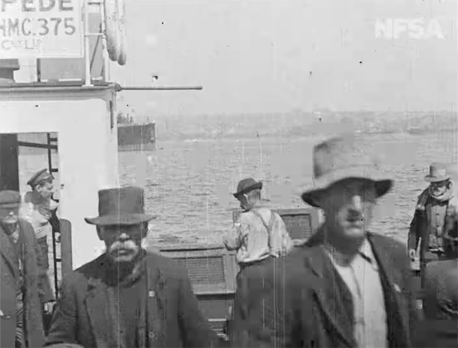 We are briefly shown a shot of an idle shipyard and then the footage cuts to labor leaders being released on bail, arrested as part of a government pressure tactic. The strikers sarcastically raise their hats to passing trams, manned by scabs, and then the footage shows the other side of the coin: the “volunteers” working the jobs left empty by the striking workers. There is considerably less merriment on this side, a few waving hats but mostly grim stares. (An armed strikebreaker had murdered an unarmed striking laborer, this was a life or death situation.)