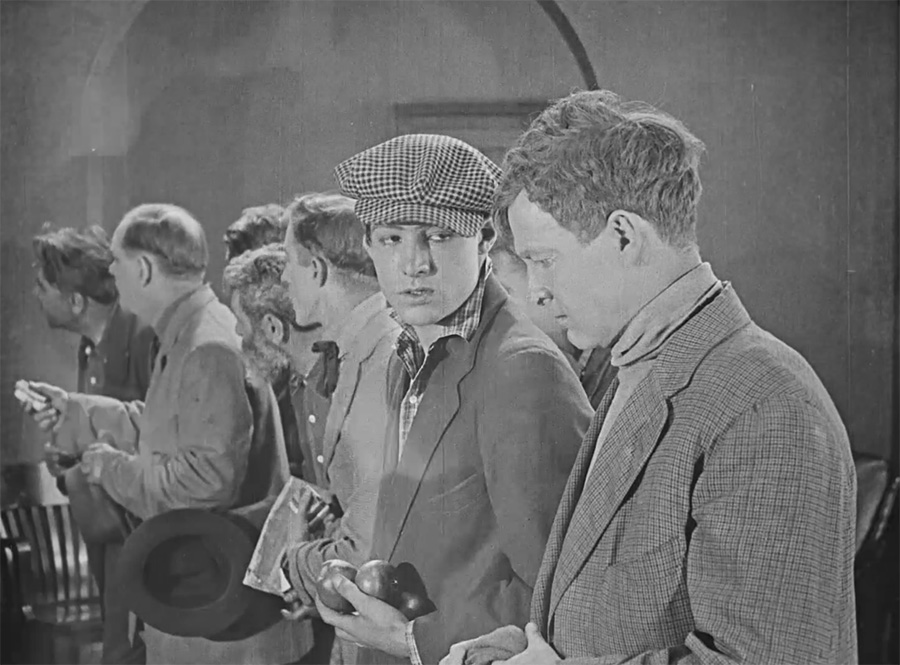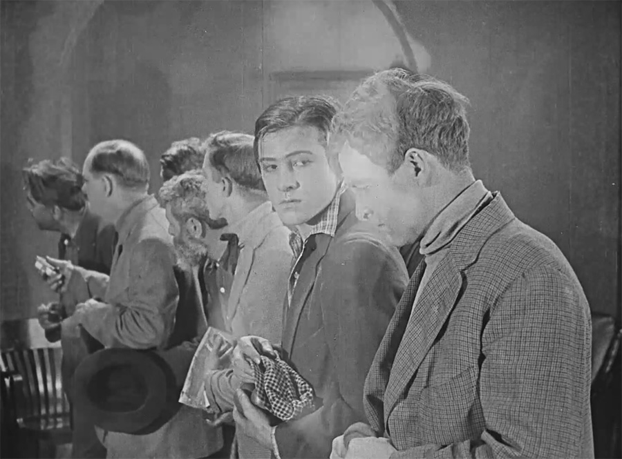 Meanwhile, devout minister Eli Barker (Harry Holden) is holding services and serving hot coffee to the impoverished locals. One of his parishioners, McGregor (Bert Woodruff), finds Dawn collapsed in a doorway and carries her inside. The mission workers nurse her back to health and she continues on, playing the organ and singing hymns.