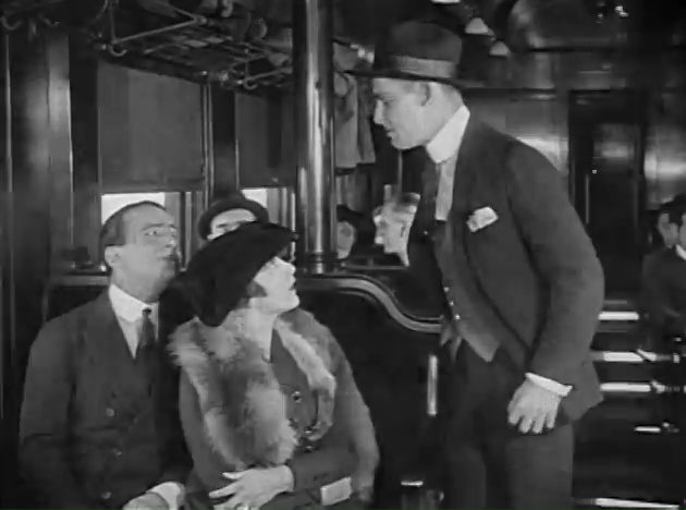 Marna’s father will put an injunction on the marriage and has set things in motion, so Marna and Jimmie must avoid getting served and they must find a minister. Jimmie leaves the train to find Rev. Tubbs (Fred Warren), who, appropriately enough, is enjoying a bath. Jimmie drags him from the tub but misses the train. Wally thinks he has gotten clean away and begins to pester Marna to marry him instead but she will have none of it.