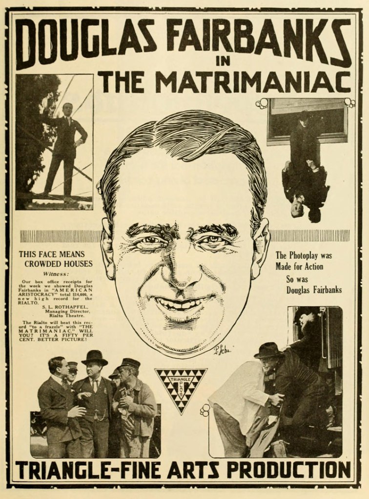 Motography, another trade magazine, like the picture a lot and recommended it to its readers. “The exhibitor who shows Fairbanks pictures knows what they are good for at the box-office; all he needs to know is whether or not The Matrimaniac is up to the standard. It is, and a little bit higher.”
