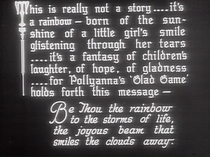 The infamously upbeat story of a child who is glad of everything adapted for the screen by producer-star Mary Pickford and screenwriter Frances Marion, with both attempting to tone down the sugar.